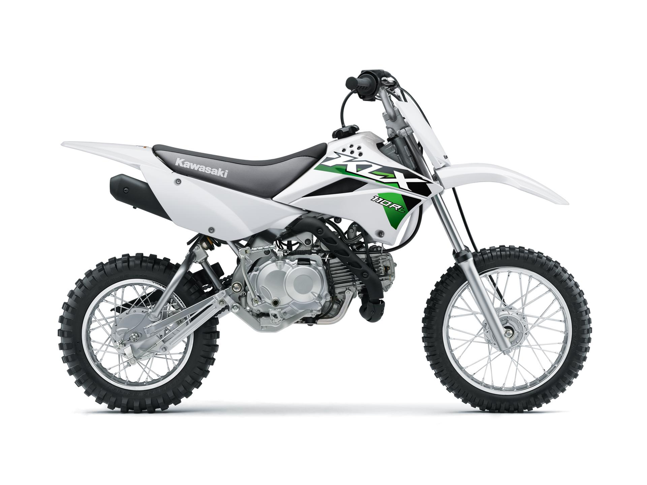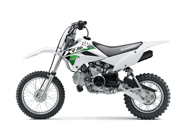 KLX110R motorcycles are powered by a 112 cc air-cooled four-stroke engine. The KLX110R features a 4-speed transmission with automatic clutch while the KLX110R L offers a manual clutch to learn big-bike shifting techniques.
