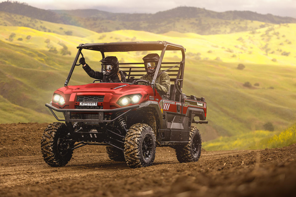 Kawasaki’s high-grade electric power steering (EPS) system is speed sensitive, offering light steering effort at low speed, while reducing assistance as vehicle speed increases to ensure responsive steering. Drivers can set the position of the tilt-adjustable steering wheel to suit their preference, as well as lift it out of the way to facilitate getting in and out of the vehicle.